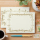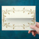 Beautiful and elegant antique gold wedding envelope template design featuring decorative leafy scrolls around the border. The design has an ivory coloured background for an elegant vintage look. This design also comes on many other paper products and also postage to suit all your wedding set needs.