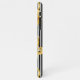 Opposites attract in this bold beautiful pattern where old meets new. A decorate baroque swash pattern in gold over a modern black and white stripes pattern has lovely contrast with feminine stylish appeal. A text template is included to personalize this case with your name.