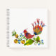 Hand-painted bird perched on a branch, surrounded by vibrant flowers and berries, decorates this notebook. Nature-inspired design adds color and charm to your writing or note-taking — a unique gift for art and nature lovers
