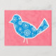 Decorative Bird with Patterns on Pink Background Postcard