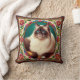 Decorative Birman Cat with Flowers Border Throw Pillow
