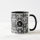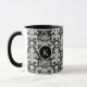 A timeless black and white damask pattern, featuring intricate floral motifs intertwined with elegant curves and flourishes, exuding sophistication and classic elegance.