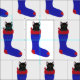 This is a fun fabric for cat lovers. There are lots of things that you can decorate with this. The design features a painting of a black cat climbing out of a red and blue Christmas stocking. The design is repeated in an alternating pattern.