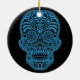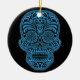 Decorative Blue and Black Sugar Skull Ceramic Ornament