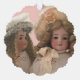 Deux belles poupées en porcelaine de bisque, de fabrication allemande, entre 1900 et 1910, font honneur à cet ornement en papier qui serait adorable sur un paquet cadeau ou un arbre. Fait une étiquette cadeau idéale pour cette petite fille ou une dame de tout âge. Idéal pour les amateurs de poupées anciennes et vintages, de Noël victorien ou de Cottage Shabby Chic déco.