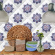Decorative ceramic tile with a medallion with dark blue, light blue and red on a white background. These will be great for your kitchen back splash, bathroom or fireplace. Design by Oregon tile maker Fay Jones Day