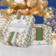 The wrapping paper for Christmas celebration in designing with the Christmas ornaments such as Christmas tree, Christmas bell, Christmas wreath and Christmas decor leaves in retro prints with a presentation of green colour.