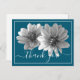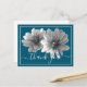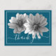 Stunning close-up black and white photograph of two decorative dahlias against a blue coloured background. The flowers covers the front of this postcard which can be used as a thank you card, a birthday card, or any other card of your choice. Customize it with your text and/or pictures to make it one-of-a-kind!