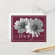 Stunning close-up black and white photograph of two decorative dahlias against a wine coloured background. The flowers covers the front of this postcard which can be used as a thank you card, a birthday card, or any other card of your choice. Customize it with your text and/or pictures to make it one-of-a-kind!