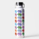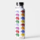 Multi-coloured rows of decorative elephants with background colour you can customize.