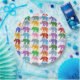 Multi-coloured rows of decorative elephants with background colour you can customize.