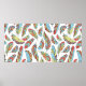 Decorative feathers seamless pattern. Hand drawn v Poster