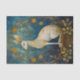 This enchanting tissue paper features a whimsical white rabbit accented with golden ornate markings, set against a starry blue forest background with branches and florals. The magical woodland aesthetic gives it a vintage storybook feel. This is a full page design, perfect for gift wrapping, seasonal crafting, decoupage, and junk journalling projects where a touch of woodland magic is desired.