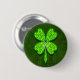 This green four leaf clover design is decorated with sharp lines and flowing swirls. The symmetrical pattern has two leaves on either side with a large stem at the base. This stunning symbol for good luck makes a beautiful button design.