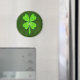 This green four leaf clover design is decorated with sharp lines and flowing swirls. The symmetrical pattern has two leaves on either side with a large stem at the base. This stunning symbol for good luck makes a beautiful magnet design.