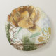 This decorative fresco design by Megan Meagher features a globe flower. An abstract background surrounds the flower, creating a surreal vibe that contrasts with the realistic flower.