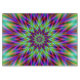 A digital abstract fractal image with a star flower design in green yellow blue red and pink by Objowl. As well as cutting boards this design is also available on most other products. If you need help or would like me to make changes to this or any other item email me. objowl at gmail.com. No obligation just pleased to be of service.