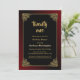Black 21st birthday dinner party invitation with an ornate gold frame featuring a red ombre outer border to complete the design creating a vibrant invitation for your special occasion.