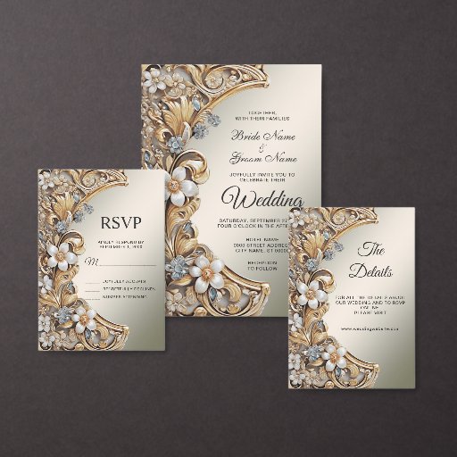 Beautiful Decorative Gold White Floral Engagement Invitation