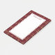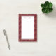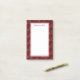 Sticky notes with a repeating pattern of fancy golden snowflakes with elegant crystalline shapes. A dark red background.