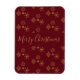 A flexible magnet with a repeating pattern featuring an illustration of fancy golden snowflakes with elegant crystalline shapes. A dark red background. Merry Christmas written across the centre in a trendy script font.