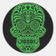 Decorative Green and Black Sugar Skull Classic Round Sticker