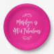 Magenta hot pink and white decorative, personalized 40 & Fabulous typography round paper plates.