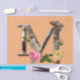 Beautiful letter M, with vintage ladies, roses and a butterfly