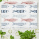 A red, blue and white decorative modern design featuring fish sardines. A Mediterranean inspired design illustration perfect for Summer. The perfect Summer party décor or beach home décor for your beach house. Ideal for anyone who loves fish, sardines, ocean and nautical themed illustrations the seaside and Summer themed designs.