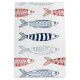 A red, blue and white decorative modern design featuring fish sardines. A Mediterranean inspired design illustration perfect for Summer. The perfect Summer party décor or beach home décor for your beach house. Ideal for anyone who loves fish, sardines, ocean and nautical themed illustrations the seaside and Summer themed designs.