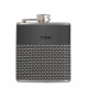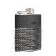 Stylish flask with graphics of a metallic woven metal look, on the bottom, with a black brushed metal look, on the top. A black three letter monogram is ready to personalize. Great gift idea for any guy and especially great as a wedding party gift for groomsmen.