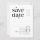 A bold, decorative font immediately catches your eye and sets the tone for most pieces of this modern, minimalist wedding suite. The wedding 'Save the Date' card shown here, with it's informal layout, provides the date of your big day, and optionally, the address of your wedding website. Search ID887 to see all the products in this wedding set.