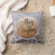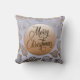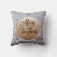 Decorative pillow Merry Christmas with iridescent satin effect pattern in bronze tones.