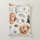 Stylish decorative pillow with a watercolor print in a Halloween theme. The white background features cute pumpkins with faces, friendly ghosts, bats, and autumn leaves. This pillow will be a great accent in your interior, creating a festive and cozy atmosphere. Suitable for the living room, bedroom, or as an original Halloween gift.