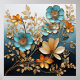 Decorative porcelain-look flower pattern in golden ecru and soft turquoise.