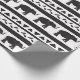Decorative repeat seamless pattern with hand drawn elephants lines and triangles. Hand painted black stripes and triangles on white background.