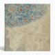 A decorative silver tapestry showcases a circular floral arrangement. This print would make a wonderful gift for people who love tapestries or tapestry-style art!