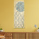 A decorative silver tapestry showcases a circular floral arrangement. This print would make a wonderful gift for people who love tapestries or tapestry-style art!