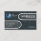 An elegant piece of simple design. In a dark blue cover with an underlying globe design, there are two rounded grey tab columns. At the upper tab, you have your prestigious name and job title. Westwards to this is the logo and its business name. At the lower grey column rest the contact details. There are two accentuating bright blue columns. The first one at the top houses your prestigious name and job title. Eastwards at the lower corner, you can find the slogan option.