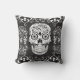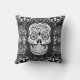 Decorative Sugar Skull Black White Gothic Grunge Design Throw Pillow or Accent Cushion with a skull and roses and decorative flourishes and hearts. The background is a subtle damask pattern. Perfect for Day of the Dead or Halloween.