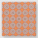 A decorative coaster featuring a symmetrical geometric pattern with blue, white, and brown hues shown from the front and back on a gray background.