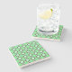 A decorative coaster featuring a symmetrical geometric pattern with blue, white, and brown hues shown from the front and back on a gray background.
