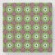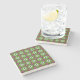 A decorative coaster featuring a symmetrical geometric pattern with blue, white, and brown hues shown from the front and back on a gray background.
