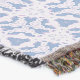 Decorative triangles in blue, white and purple, decorative lace net design.