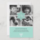 A large aqua-coloured Star of David is the focal piece of this flat greeting card. The star prints in the centre of four of a grid of your own colour or black-and-white photographs. The words "The Festival of Lights" print inside the star with swirls both inside and radiating outward from the star to make a lovely Hanukkah greeting card. A simple menorah prints at the bottom with your customized message added right above. Available in alternate colours with matching products.