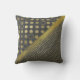 Stylish decorator throw pillow done in a chalkboard grey, with two different dotted patterns and graphics of a gold smeared paint stoke, between them. Customize to add text to this chic accent piece.