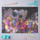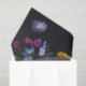 This unique decoupage design features an intricate human skull enveloped in vibrant flowers, blending elements of life and death in a striking visual contrast. The skull itself is adorned with delicate floral patterns, while larger blooms like roses, daisies, and peonies surround and intertwine with the skeletal structure, creating an ethereal yet thought-provoking aesthetic. The dark background amplifies the brilliance of the flowers, making their colors pop with intensity.
