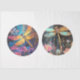 The image shows two 12-inch round circles featuring vibrant and colourful dragonfly designs. The left circle depicts a dragonfly with orange and yellow wings amidst a background of blue and pink flowers. The right circle features a dragonfly with blue and yellow wings against a dark background with splashes of gold and pink flowers. The intricate details and vivid colours make these designs visually striking and appealing