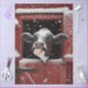 winter cow decoupage paper, certified trouble maker cow, funny farmhouse animal design, rustic red barn craft sheet, snowy cow printable, humourous barnyard collage paper, farmhouse winter décor paper, cow sticking tongue out design, rustic holiday craft supply, country animal decoupage sheet