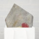chickens on ledge, fluffy feathers, colourful chickens, white chickens, pink chickens, light blue chickens, red combs, rustic wall, greenery, pink flowers, charming aesthetic, artistic touch, whimsical image, natural beauty, visually appealing.